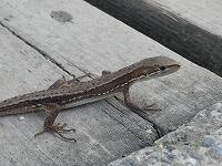 <学校の生き物たち紹介> 図書室南東側の壁際で、花を咲かせ始めたムラサキゴテン。