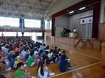 始めに、校長先生から、クラスや一人一人が目標を立てて、それを達成するためにがんばることと、「みんなでのびる」を合い言葉に、全校児童が力を合わせ、助け合いながら生きる力を身に付けていくことのお話をいただきました。