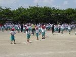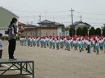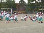 このように、落ち着いた教育環境が整いつつある中、業間には、運動会に向けて、ラジオ体操の練習と、応援合戦の隊形移動の練習が行われました。