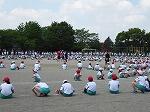 そして、業間の全体練習では、体操の隊形に開く練習を行った後、早速、練習の成果を発揮して、全校児童のお手本を示してくれました。