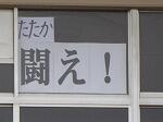 また、放課後には、職員作業で、西側の入退場門を設置したり、スローガンを3階に掲示したりしました。