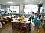 全校放送で音楽を流し、それに合わせて、動きの合い言葉を口ずさみながら練習している様子が見られました。
