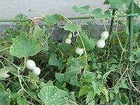 <学校の生き物たち紹介> 理科室前の教材園で、センナリヒョウタンが、たくさんの実を付けています。