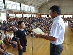 まず、表彰の前に、校長先生が返事をすることの意義のお話と、学年ごとの練習をしてくださいました。