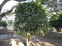 <学校の生き物たち紹介> 体育館北側の観察園では、キンモクセイに比べると控えめに、ギンモクセイが白い可憐な花を咲かせ、かすかな香りを漂わせています。