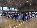 学校では、業間活動の時間に体育館で全校集会が行われました。