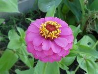 <学校の生き物たち紹介> 図書室前の花壇で、色とりどりの花を咲かせ始めたヒャクニチソウ。