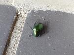 壁の角の上の方に、ニホンアマガエルが3匹もへばりついていました。また、足下には、緑色に光るコガネムシがじっとしていました。