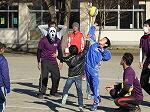 やや冷たい北風が吹く中ではありましたが、午前9時半より、おやじの会主催の「親父とドッジボール」が校庭で行われました。