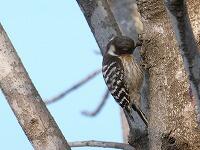 <学校の生き物たち紹介> 朝、校長室前のトチノキで、ドラミングをしながら餌探しをしているコゲラに出会いました。