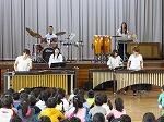 本日は、情操教育の一環として、マリンバを中心とした打楽器合奏団「岡田知之パーカッションアンサンブル」による演奏を鑑賞しました。