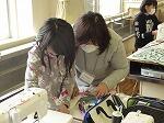 学校では、1・2校時に、5年3組が、地域の裁縫ボランティアさんの支援を受けながらナップザック作りに取り組みました。