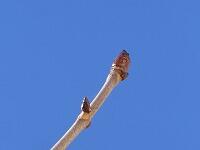 <学校の生き物たち紹介> すっかり葉を落としたトチノキの枝先には、寒い冬の後に訪れる暖かい春を待つための準備が進んでいます。
