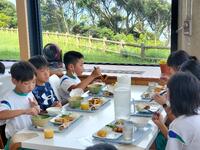 給食を作る大変さを実感し、「好き嫌いしない。」と決意した1年生でした。