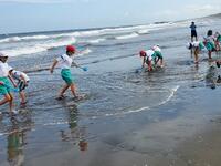 1日目の砂浜活動を行いました。海水くみリレーや砂の造形をチームワークよく行っていました。広大な太平洋の海を前にして、海浜自然の家でしかできない貴重な活動になりました。