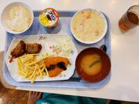 <今日の給食> 黒コッペパン・はちみつ&マーガリン・牛乳・タンドリーチキン・ジャーマンポテト・トマトとあさりのスープ