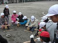 、空気の通り道を考えながらできました炊きあがるまでの時間を利用して、火おこしに挑戦です。