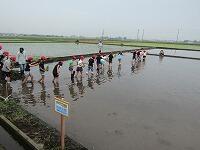よくお話を聞き、いよいよ田んぼに入ります!