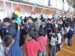 そして、1年生から5年生までの協力で製作したプレゼントを、6年生一人一人に贈りました。