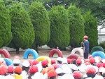そのプール開き集会を、本日の業間に、プール前の校庭で行いました。