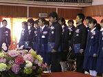 卒業生入場から始まり、別れの言葉、校歌斉唱、卒業生退場を通して練習しました。