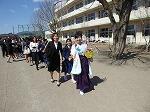 教室に戻って、学級担任との最後のショート学活を行い、校庭で、下級生に見送られて巣立っていきました。