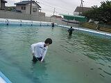 きれいになったプールを見て、大喜びの先生がいますね。だれでしょうか・・・!?