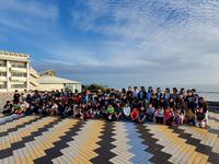 おはようございます。こちらは本日も朝から清々しい天気です。眠そうにしていた目も朝日と雄大な海を前にしてパッチリ覚めました。朝ごはんをいただいて、2日目の活動の塩作りを行います。
