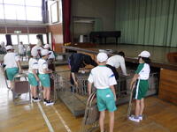 6年生が準備をした入学式の椅子を5年生が片付けました。