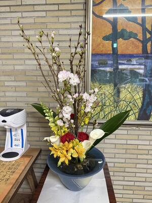 今年、生け花ボランティアの方が玄関に作品を飾ってくださりました。