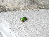 <学校の生き物たち紹介> 出勤時の玄関で、アオドウガネが出迎えてくれました。