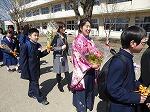 教室に戻って、学級担任との最後のショート学活を行い、校庭で、下級生に見送られて巣立っていきました。