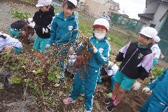 つるが伸びていたので、ほり始めるまでが大変でした。初めてさつまいもを見つけたときには、「わあ。」と歓声をあげていました。