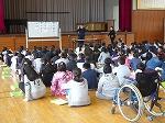 学校では、3・4校時に、体育館において、4年生の福祉教育体験学習として手話体験を行いました。