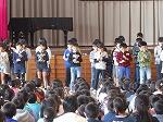 その後、3年生が、「お祭」の群読や「レッツゴー ソーレー」のリコーダー演奏、「森の子もり歌」の合唱を発表しました。
