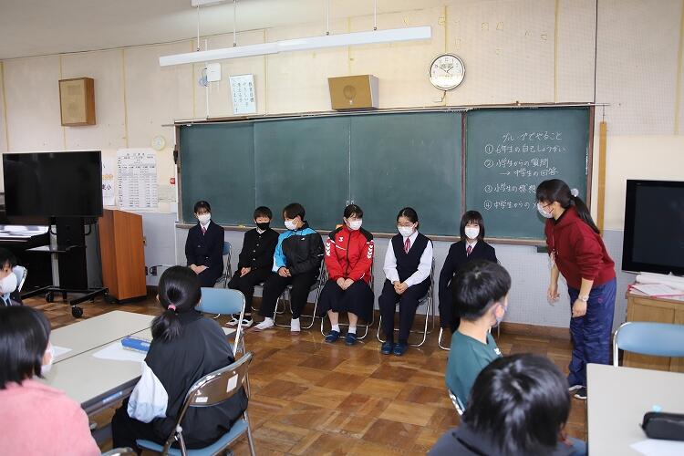 1月27日、本校の卒業生である大平中の1年生6名が、6年生と交流授業に参加しました。自己紹介が終わると、6つのグループに分かれ、中学校生活についていろいろと教えてもらいました。事前に考えていた質問を、先輩である中学生に答えてもらっていました。笑い声が聞こえる場面もあり、楽しく交流することができていました。6年生も中学生の話をうなずきながら聞いており、真剣な様子でした。フォトアルバムに写真があります。ご覧ください。