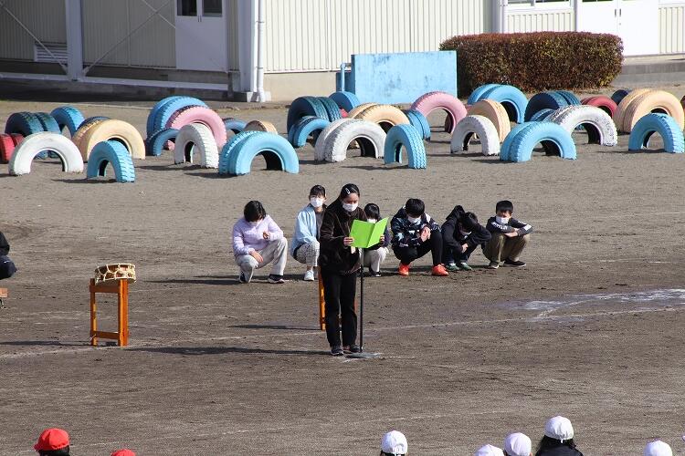 3月30日、令和4年度の離任式を実施しました。この日は卒業した6年生も参加しました。式では、お世話になった4人の先生方とお別れをしました。離任する先生方のお話を、子どもたちは静かに聞いていました。代表児童のお別れの言葉には、『先生方に教えてもらったことを忘れずに、がんばります。』と、心強い言葉もありました。離任する先生方には、いろいろとお世話になりました。異動先でもお身体に気を付けて、ご活躍ください。