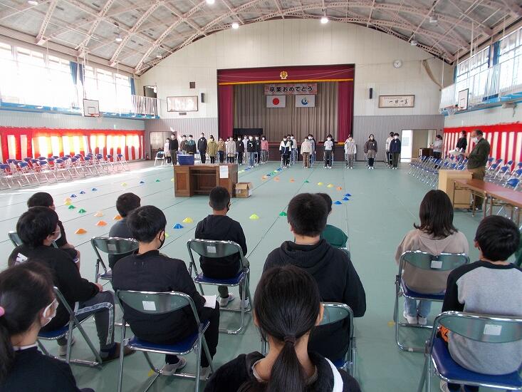 3月17日、令和4年度卒業式を実施しました。式に参加したのは、教職員と5年生、6年保護者及び来賓の学校運営協議会委員のみなさんでした。PTA会長と役員やボランティアさんのご協力で、式の様子は生配信しました。1~4年生は持ち帰ったタブレットなどでその様子を視聴しました。6年生たちは、式中大変立派な態度で参加することができました。また、5・6年生による別れの言葉は、思いが高まって涙ぐむ子供たちもいて、感動的なものになりました。6年生は校長先生から授与された証書を受け取り、立派に巣立っていきました。担任の先生と最後の別れをした後は、保護者も交え校庭で思い思いに写真撮影をしました。最後になりましたが参加してくださった保護者のみなさん、学校運営協議会委員のみなさん、そして生配信をしてくださったPTA役員のみなさん、ありがとうございました。フォトアルバムに写真があります。ご覧ください。