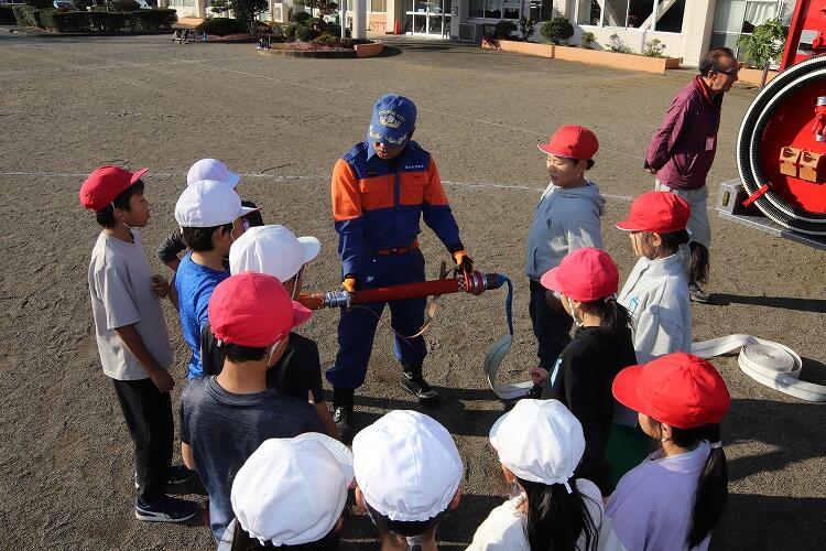 大平地区では火事は少ないようですが、これからは乾燥して火事も起こりやすい時期となります。火の用心していきたいですね。出前授業を企画してくださった消防団のみなさん、お忙しいところ、ありがとうございました。この体験をこれからの学習にいかしていきます。