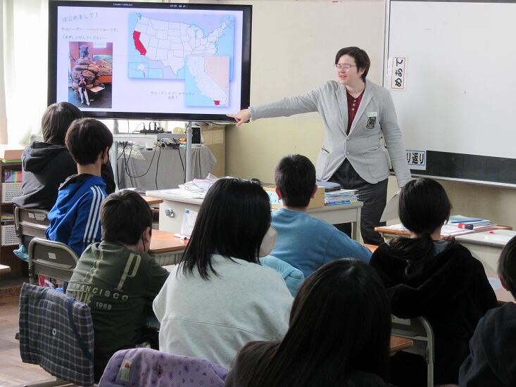 12月20日、6年生は国際交流員さんを迎えての出前授業を実施しました。県から派遣されたアメリカ出身の交流員さんに、アメリカの生活様式や学校生活、観光名所などを教えていただきました。交流員さんのご出身はカリフォルニアだそうですが、今の時期はクリスマスの飾りが個人宅ごとに行われていて、華やかだそうです。子どもたちも興味津々でした。フォトアルバムに写真があります。ご覧ください。