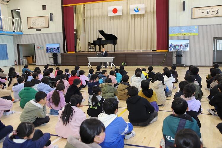 1月9日、第3学期始業式を実施しました。国歌と市歌を斉唱した後は、各クラス代表児童による意見発表がありました。「算数をがんばりたい。」「縄跳びの記録を更新したい。」など、それぞれ3学期のめあてを発表しました。その後は学校長講話でした。話の中で、高学年に向けた算数(割合)の問題が出されました。「小学校の勉強は生きていくために必要です。」との話がありました。小学校で得た知識は大人になってもよく覚えて(使って)いるものです。3学期もめあてをもってがんばりたいですね。フォトアルバムに写真があります。ご覧ください。