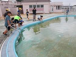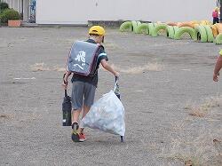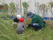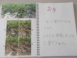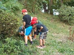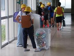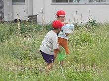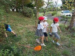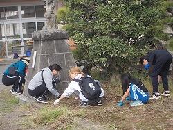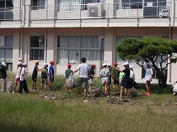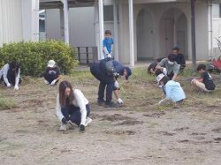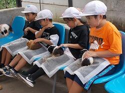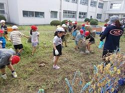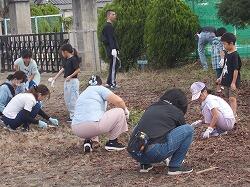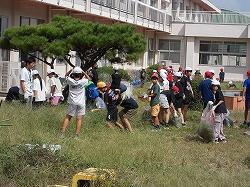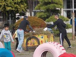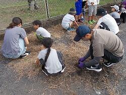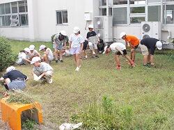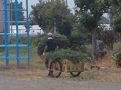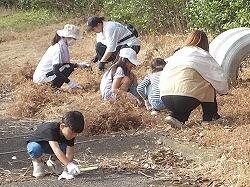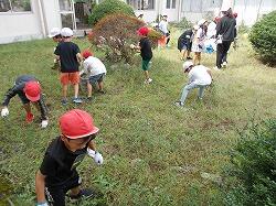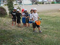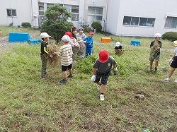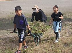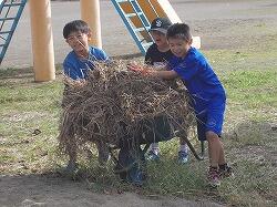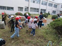 草を集めるのを手伝う6年生