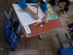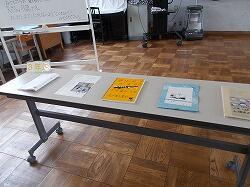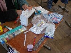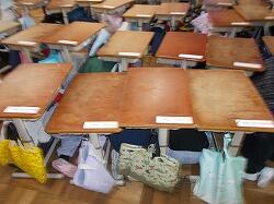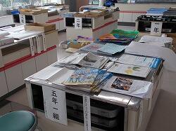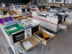 クラス表示の机に種類別に提出することになっ