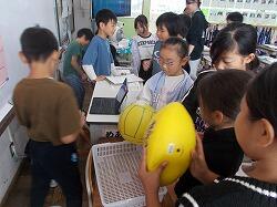 ランティアの引率のもと学校周辺のお店や施
