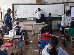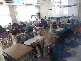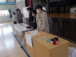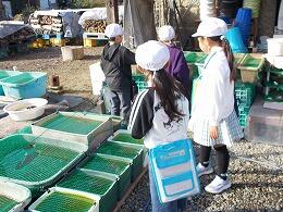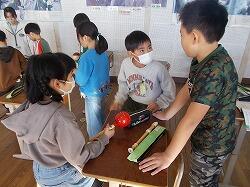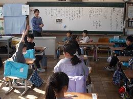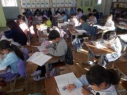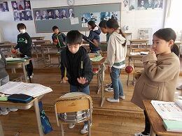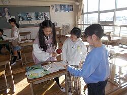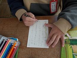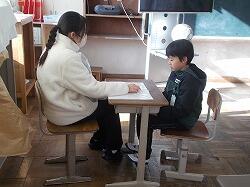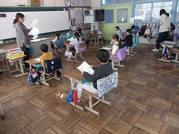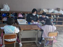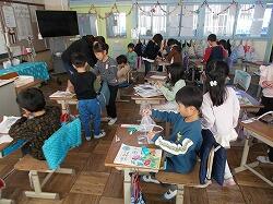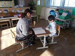 教室に入ると6年生のお兄さんお姉さんに手伝って