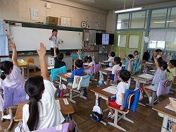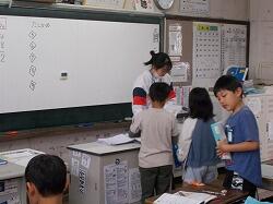 続いて校長先生による授業が行われました。大平東小の「東」という漢字には、どんな漢字がかくれているのかを考える授業でした。