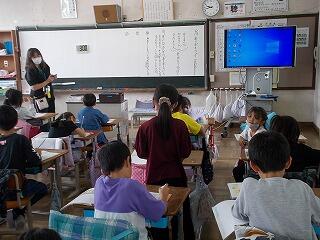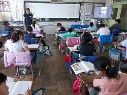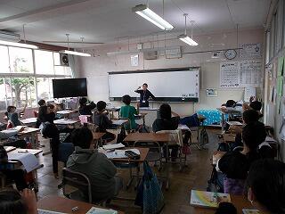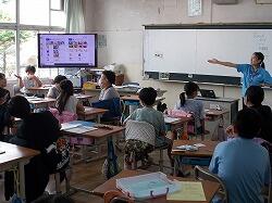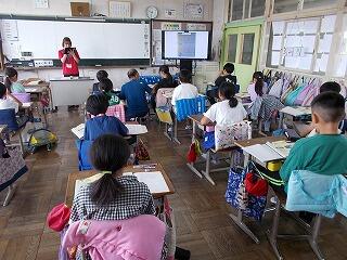 5年生は外国語の授業で、ALTと楽しく英語の学習をしていました。