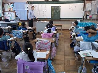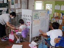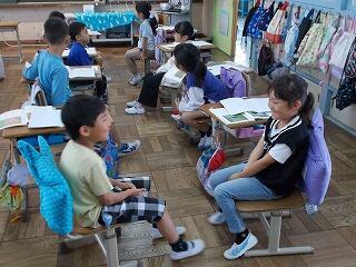 朝教室に入ったら何をするのか、担任の先生の話を聞いて、