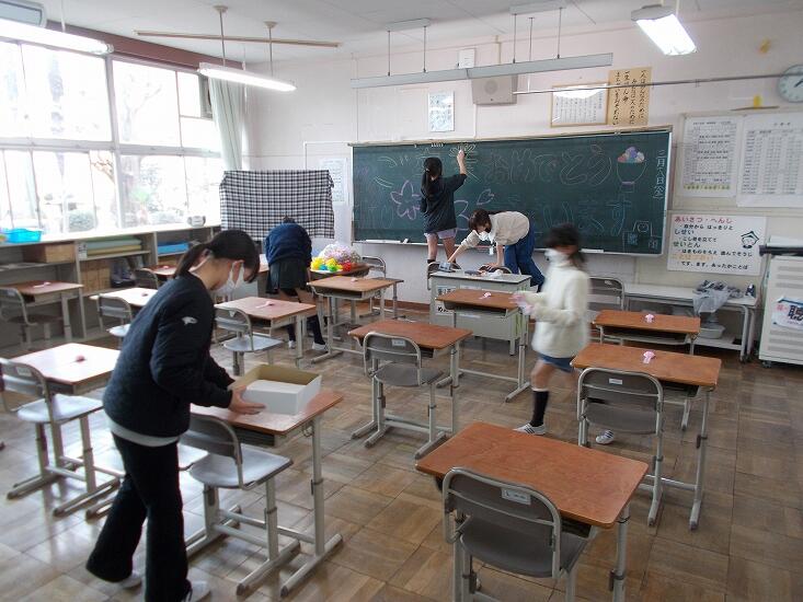 また、放課後は4・5年生と職員が式場準備を行いました。一生懸命準備する4・5年生の姿が、頼もしかったです。おかげですばらしい式場ができました。ありがとう。