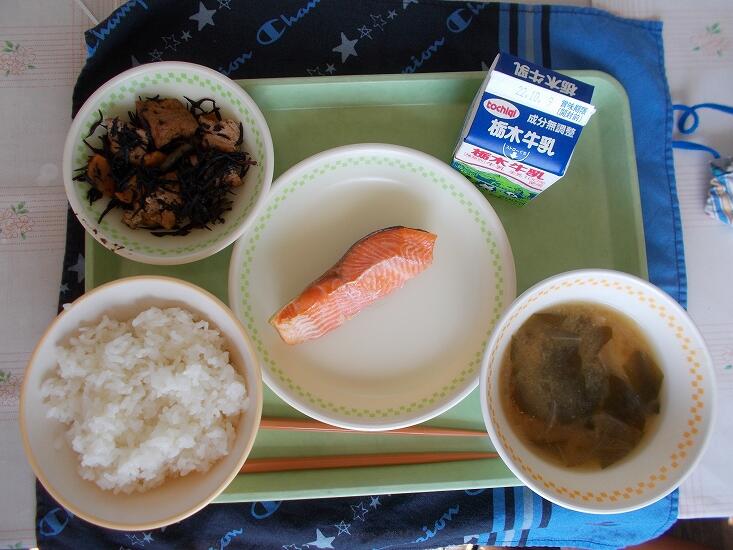 9月30日、今日の給食は「国体・障スポ応援メニュー 」でした。メニューは次のとおりです。ご飯、牛乳、ひじきと厚揚げの煮物、たまねぎとじゃが芋の味噌汁、メインに栃木県産「やしおますの浜漬け焼き」でした。やしおますとは、栃木県水産試験場で品種改良されたにじますであり、肉の色が県花のヤシオツツジの花に似ている事から命名されたそうです。子どもたちはおいしそうにいただいていました。